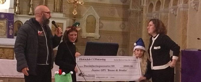 L'associazione CCMotorday a donato un assegno di 2.500 euro, destinato alle borse di studio per i giovani allievi della Junior ODV. Un gesto